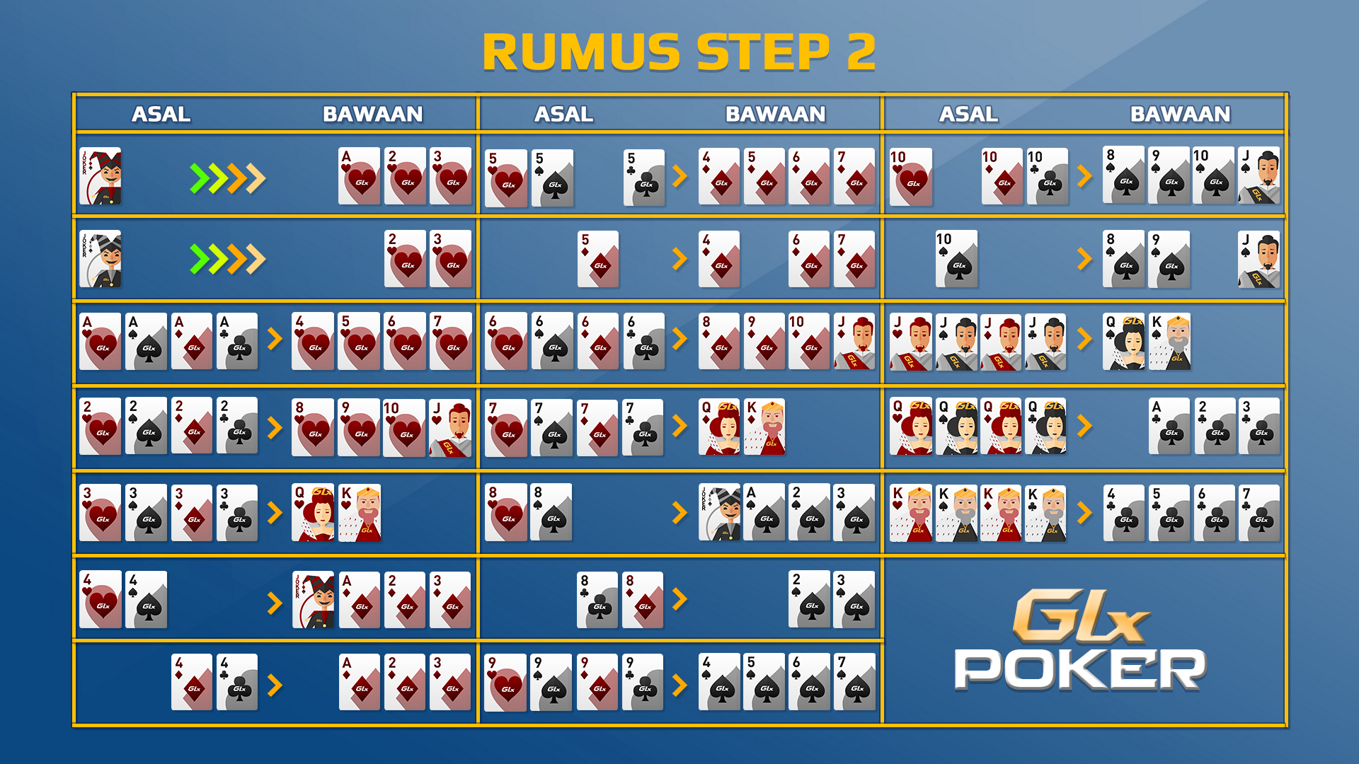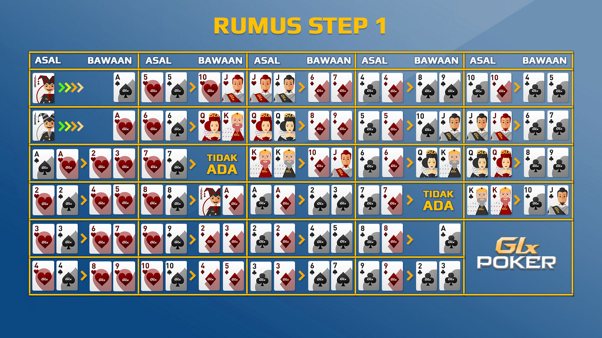 Cara Membaca Rumus Kartu Pada Permainan Bola Tangkas GLX – Permainan bola tangkas sudah menjadi permainan yang sangat digemari oleh masyarakat Indonesia dan lebih populer dengan nama permainan mickey mouse. Permainan tersebut merupakan permainan menebak jalan keluarnya kartu yang terdiri dari 7 buah kartu pada meja untuk menghasilkan 1 jenis kombinasi kartu yang terhitung dari jumlah 5 buah kartu. Pada permainan bola tangkas secara umum, terdapat beberapa jenis rumus kartu yang digunakan supaya bisa membaca jalan keluarnya kartu. Di GLX Tangkas sendiri, kami hanya menggunakan rumus kartu step 1 dan step 2 saja.